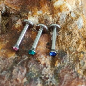 16G ANODIZED 316L STEEL LABRET INTERNALLY THREADED CRYSTAL TOP